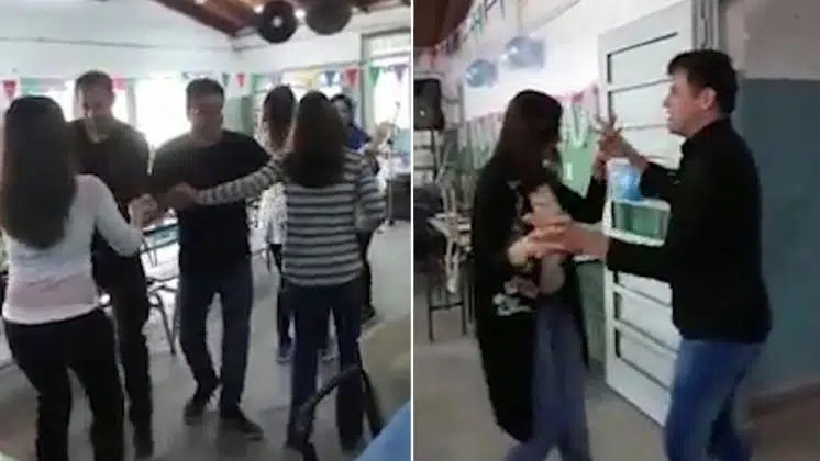 Sin embargo, en las imágenes -tomadas el viernes por la tarde- se ve cómo se da rienda suelta a la diversión. Los presentes hacen coreografías, bailan cuarteto al ritmo de Rodrigo y hasta se divierten con una banda en vivo. Sobre los pupitres de los alumnos hay vasos de plástico con bebidas y hasta sandwiches de miga.