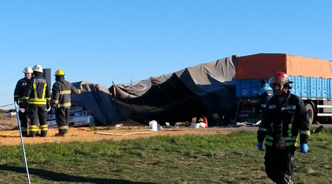Se produjo un fuerte choque entre camiones en el kilómetro 21 de la ruta 33. Según informó Defensa Civil, se trata de cinco vehículos involucrados: cuatro camiones y una camioneta.