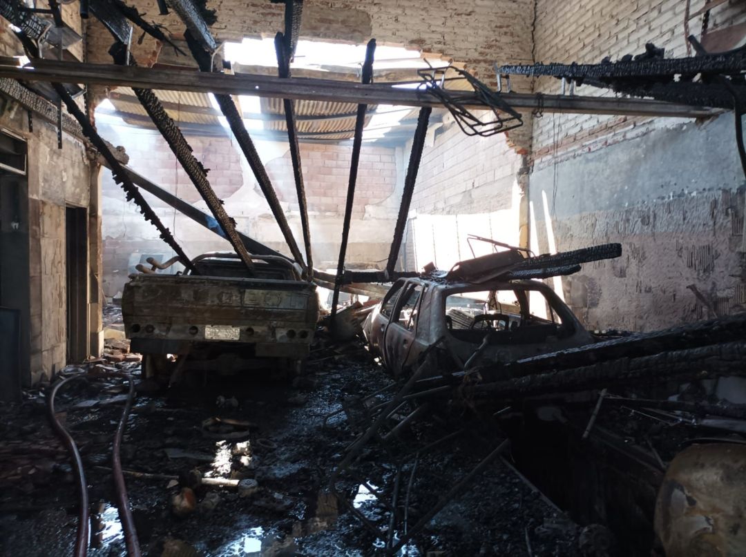 El fuego afectó la totalidad del taller y cinco automóviles que se encontraban dentro del mismo.