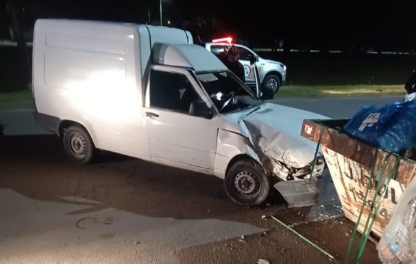 Un hombre de 45 años fue trasladado en una ambulancia del Servicio SIEMPRE con politraumatismos, tras chocar con su vehículo contra un contenedor.