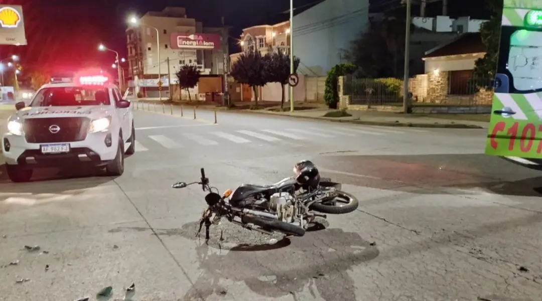 El siniestro vial ocurrió a la medianoche en Av. Alem y Mallea, entre un auto y una moto.
