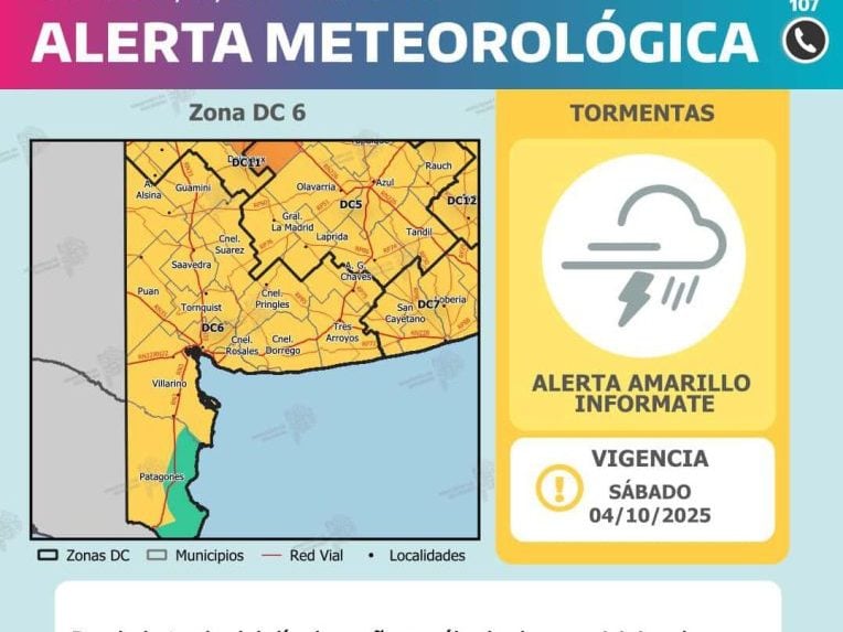 El Servicio Meteorológico Nacional informóp que durante la mañana y durante la tarde del sábado se esperan lluvias y tormentas de intensidad mayormente débil a localmente moderada, con acumulados de lluvia de hasta 15 mm.