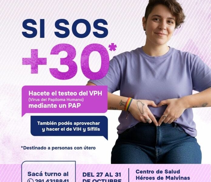 Del 27 al 31 de octubre, se realizarán testeos de VPH (Virus del Papiloma Humano) mediante un PAP, a personas mayores de 30 años con útero.