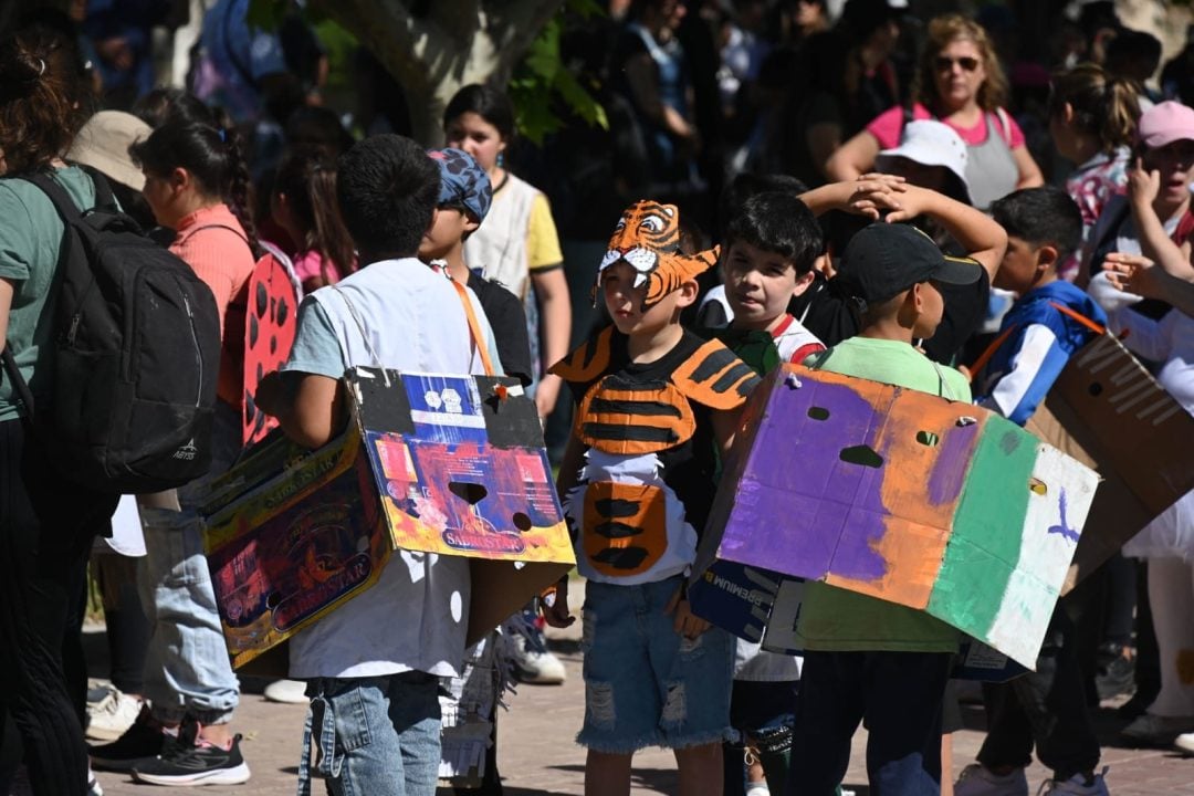 Con más de 600 estudiantes en escena, esta mañana se llevó a cabo un encuentro de Comparsas Escolares PlaPla en el Parque Independencia.