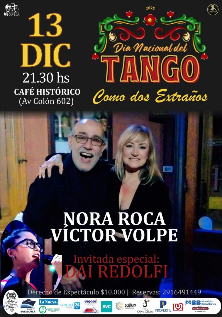 A las 21.30, también en el Café Histórico, se estrenará “Como dos extraños” con Nora Roca y Víctor Volpe con la participación especial de Dai Redolfi. Las reservas pueden hacerse al 2916491449.