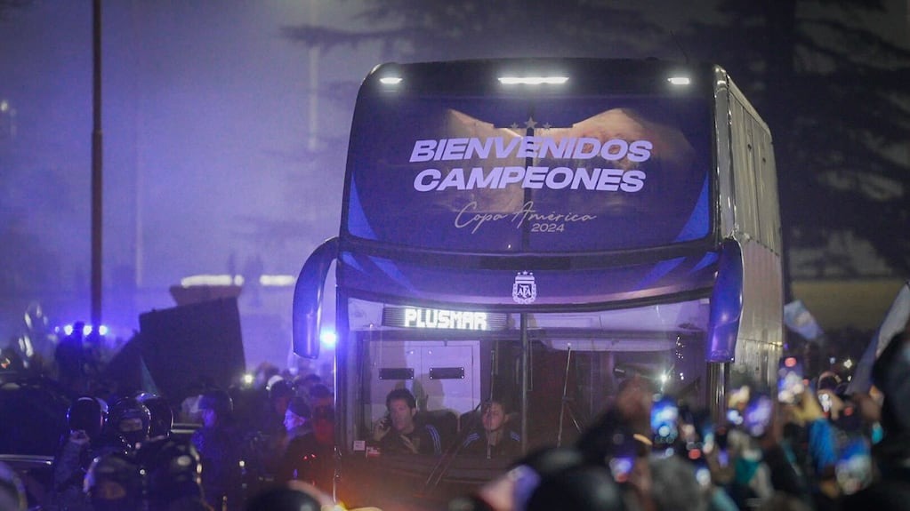 - Después de consagrarse campeón de la Copa América, la Selección argentina llegó al predio de la AFA en Ezeiza.