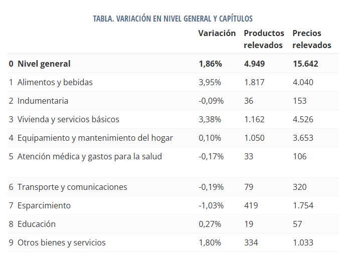 Hubo algunas bajas puntuales (por ejemplo frutas secas y en conserva: -0,67%).