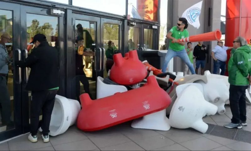 Horas mas tarde Montiel se negó a declarar ante la Fiscalía encabezada por la Dra Marina Lara y permanece alojado en la Comisaría Primera. Se le acusa de coacción agravada por el uso de armas (bidón de combustible), daños a los portones del shopping y amenazas.