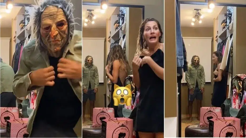 La víctima de su disfraz era, como no podía ser de otra manera, Mica, quien se estaba bañando al lado del vestidor. Pero si su objetivo era asustarla cuando saliera, esta vez no lo logró.