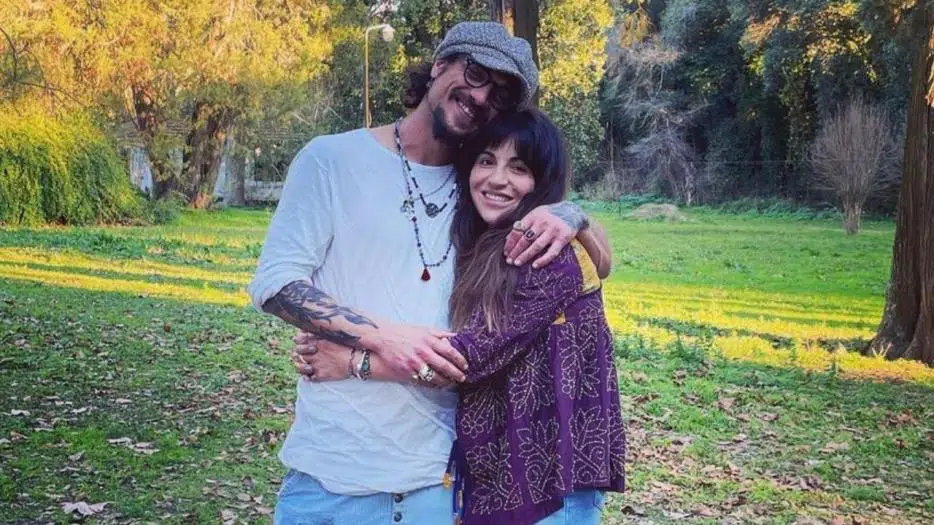 Daniel, que viste uno de sus tradicionales sombreros, le da un beso a Gianinna en la mejilla mientras ella mira feliz a cámara.