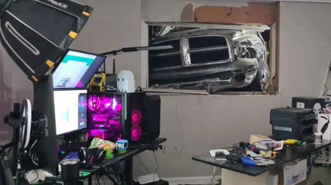 Pudo haber sido una tragedia, pero no hubo heridos. Una camioneta chocó y se incrustó en la casa de un streamer que vive en la localidad de Acworth, en el estado de Georgia, EE.UU.