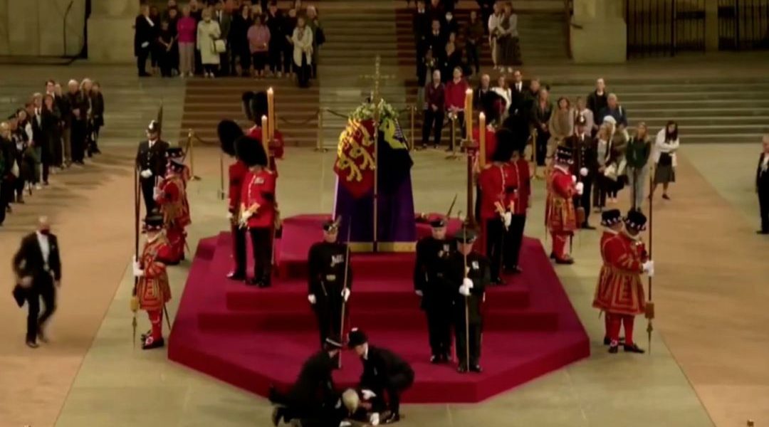 Miles de personas que presenciaban la capilla ardiente de la reina Isabel II en Westminster Hall quedaron boquiabiertos cuando un guardia real que se encontraba cerca del féretro comenzó a balancearse, se descompensó y cayó tendido sobre el piso de piedra, a pesar de los intentos de su compañero de sostenerlo sin abandonar su puesto.