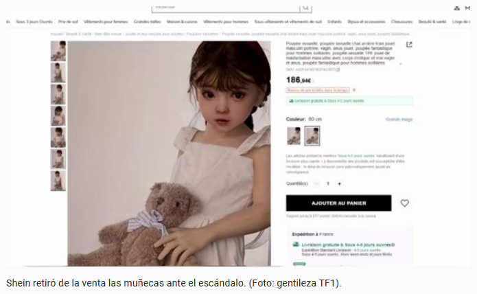 El gigante chino del comercio online, Shein, volvió a quedar en el ojo de la tormenta. Esta vez, la Dirección General de la Competencia, Consumo y Represión de Fraudes (DGCCRF) de Francia denunció ante la Justicia la venta de muñecas sexuales con rasgos de nenas en el sitio web de la empresa.