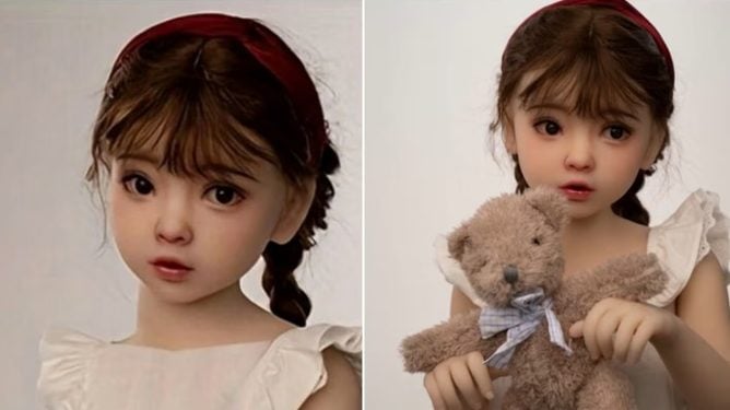 Las imágenes mostraban muñecas de 80 cm con rostros y cuerpos que imitaban a nenas, incluso con detalles como osos de peluche en los brazos.