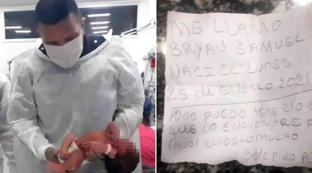Según le contó la mujer a la Policía, el miércoles por la mañana caminaba por la calle cuando, en la calle Nolting entre Bellaco y Alianza, vio una bolsa y escuchó ruidos extraños adentro de ella. Al abrirla, vio a un bebé junto a una nota escrita a mano. “Me llamo Bryan Samuel, nací el lunes 25 de enero de 2021. Yo no puedo tenerlo, el que lo encuentre por favor cuídelo mucho. Solo pido perdón”, decía el papel.