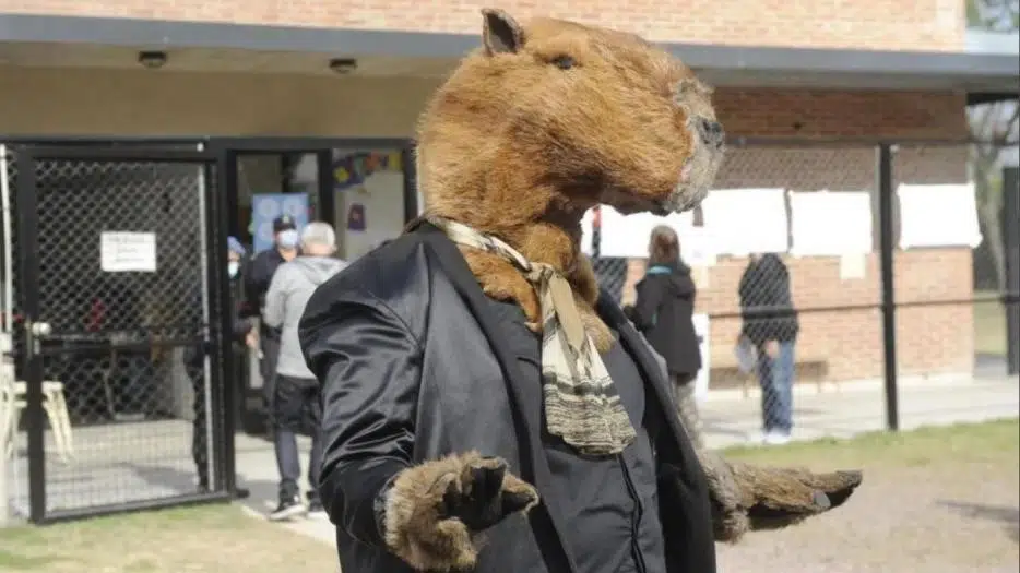 Un hombre se presentó a votar disfrazado de carpincho en el colegio San Pedro de la localidad de Tigre, donde también emitió su voto el precandidato a diputado en la provincia de Buenos Aires, Diego Santilli.