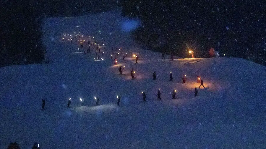 Si bien la fiesta incluye dos jornadas completas (empezó este sábado y se extenderá hasta este domingo) el momento más emotivo y característico tuvo lugar, como todos los años, en pleno atardecer, cuando los instructores de esquí del Club Andino Ushuaia y Cerro Castor comenzaron a descender por las laderas de la montaña portando antorchas encendidas.