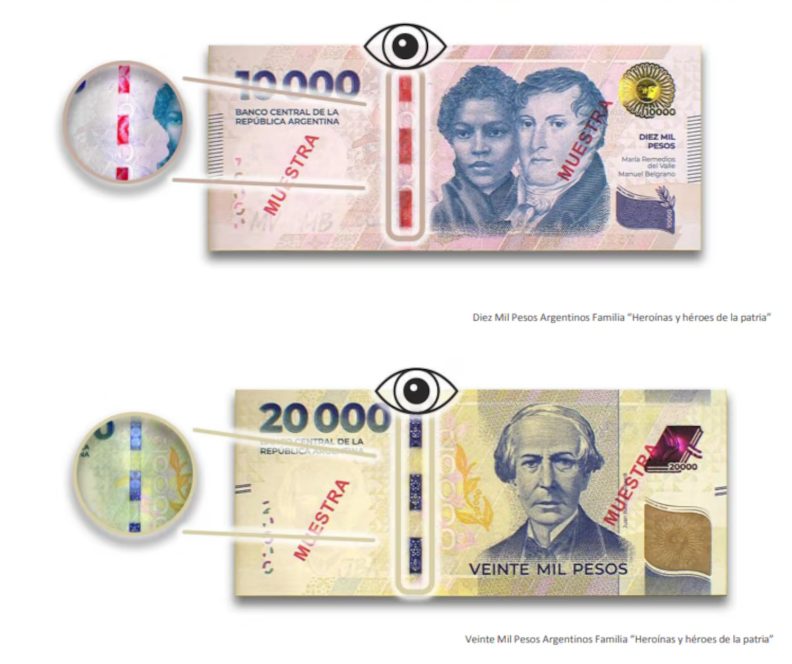 Las autoridades recomiendan utilizar el método “toque, mire, gire” al examinar el papel moneda (pesos, dólares y euros) que permite obtener “una presunción de falsedad hasta tanto el material en cuestión sea sometido a un proceso de peritaje”.