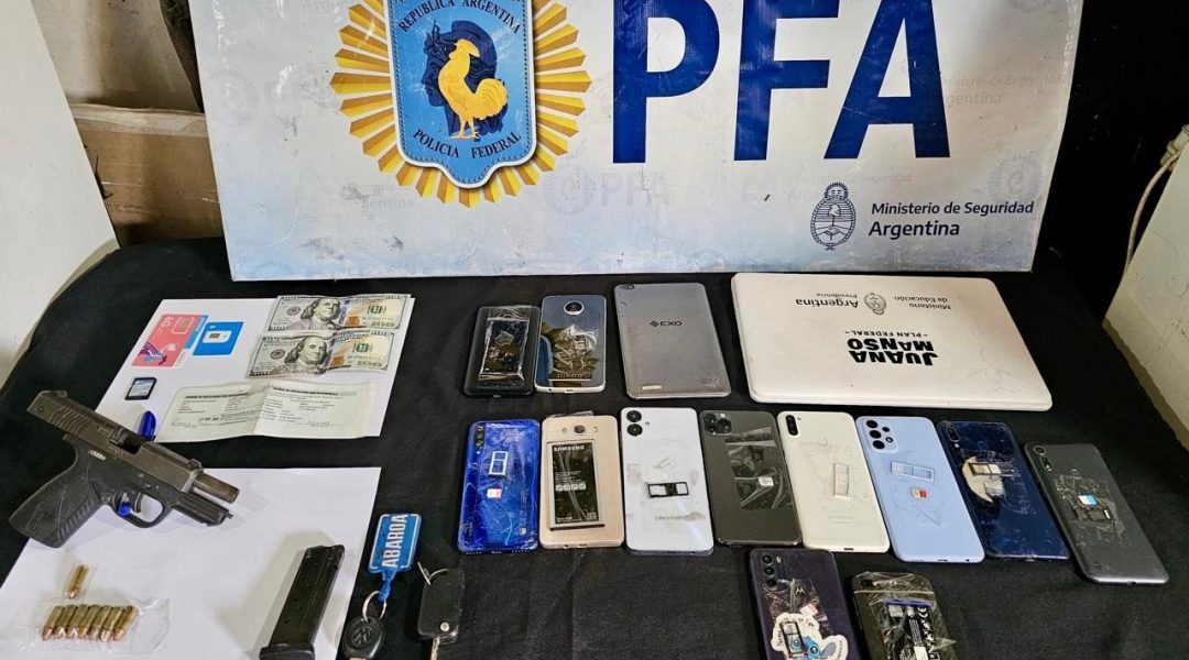 Por su parte, al irrumpir en cada una de las moradas investigadas, se procedió a la detención de tres individuos más (dos mujeres y un hombre) y al secuestro de 25 teléfonos celulares, tres tablets, un arma de fuego 9mm, varias municiones, tarjetas de prepago y 200 dólares.