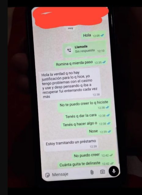 En un mensaje de WhatsApp dirigido a otra madre, reconoció: “La verdad es que no hay justificación para lo que hice. Yo tengo problemas con el casino. Usé y después, pensando que la iba a recuperar, me fui embarrando cada vez más”.