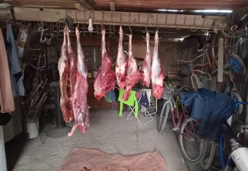 Ya en el interior del campo, mataron y faenaron a los animales, dejando sus cabezas, patas y vísceras en el lugar para luego darse a la fuga en una motocicleta tipo enduro.