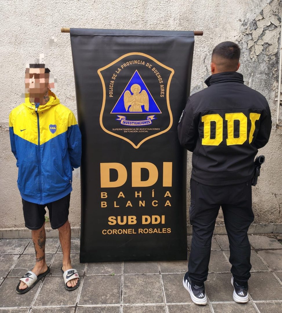 Las tareas investigativas realizadas por la DDI de Punta Alta permitieron individualizar y detener al acusado, en calle 25 de Mayo al 2200 de Bahía Blanca.