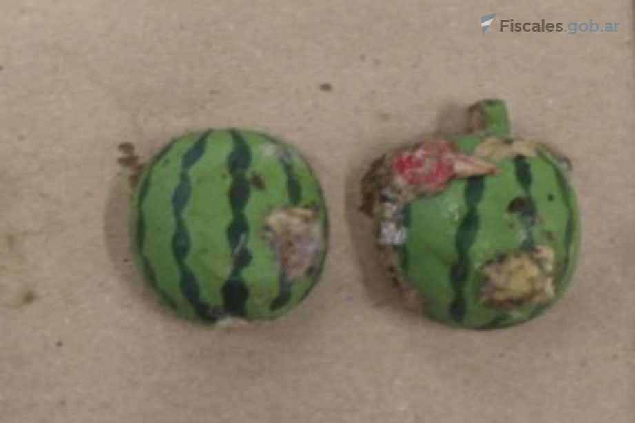 El amuleto con forma de sandía que pertenecía a Facundo Astudillo Castro y, según la imputación, fue plantado por el condenado instructor de perros Marcos Herrero en un destacamento policial. Foto de archivo: MPF