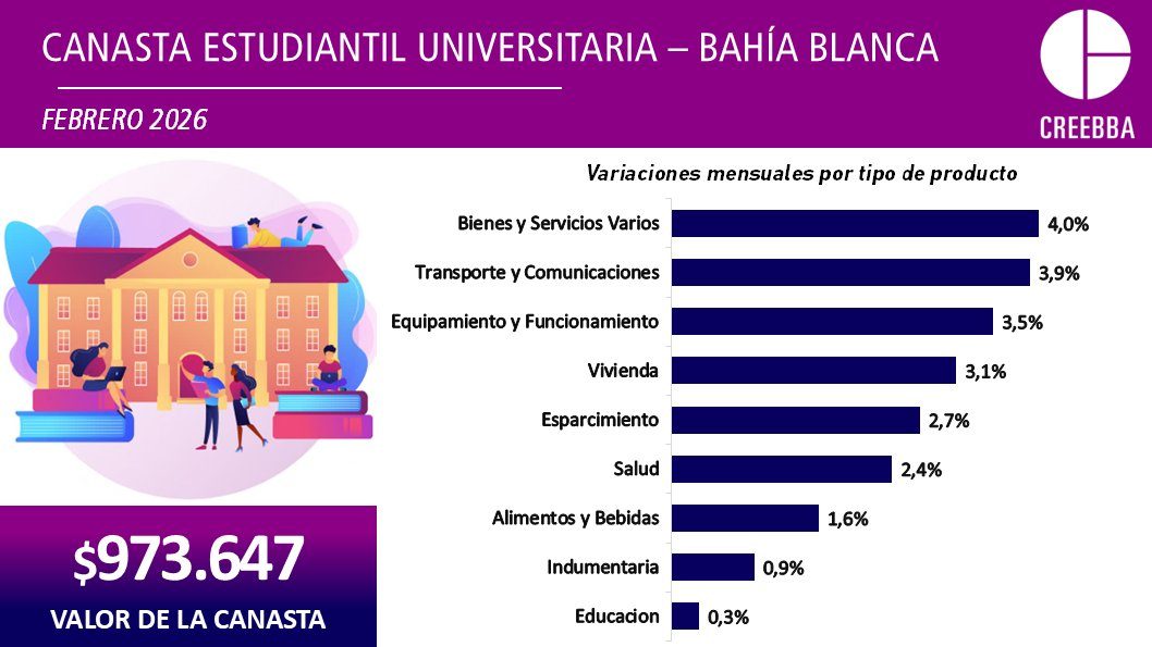 Esta canasta tiene como objetivo medir el vivir Bahía Blanca y estudiar en la Universidad Nacional del Sur (UNS) para un joven procedente de la región.