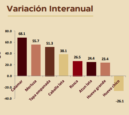 Comparando el indice 2025 con el actual, hubo un icremento del 29%, siendo el calamar, la merluza y las tapas de empanadas los elementos que mas aumentaron.