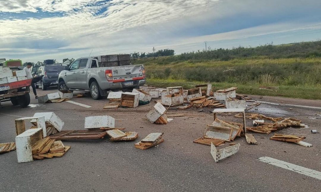 Un choque entre una camioneta que transportaba colmenas y un camión de cargas generales provocó este viernes importantes demoras en la Ruta Nacional 3, a la altura del kilómetro 715, en el distrito de Médanos. El siniestro no dejó personas heridas, pero generó complicaciones en la circulación debido a la obstrucción parcial de la calzada.