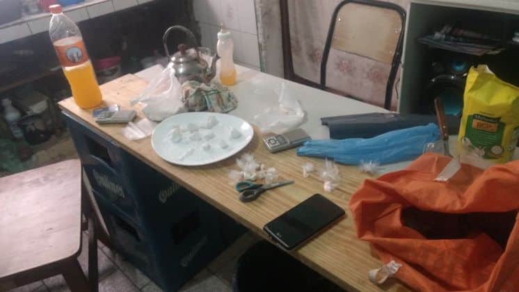 Personal de la Dirección Departamental de Investigaciones detuvo a dos personas en el marco de un allanamiento realizado en una despensa de calle Pronsato 2753 por una investigación de un robo calificado. La policía sorprendió a los moradores fraccionando cocaína en dosis de menos de 1 gramo en la cocina del lugar. Se secuestraron dos bolsas con droga, una de 121 gramos y otra de 129, y varias dosis fraccionadas de 10 gramos. También se encontraron 164 mil pesos, un revolver calibre 32 largo, 25 celulares smartphone, 3 cámaras digitales, una filmadora, 2 tablets y varios elementos que se sospechan sería robados.