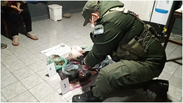 Cuando personal del puesto realizaron el control de la carga transportada, entre las bolsas de papas, detectaron una bolsa de residuos que no guardaba relación con la carga declarada. Extraída esa bolsa, dentro encontraron una sustancia vegetal semi-compacta de similares características a los cogollos de cannabis sativa, que luego se determinó que era marihuana.