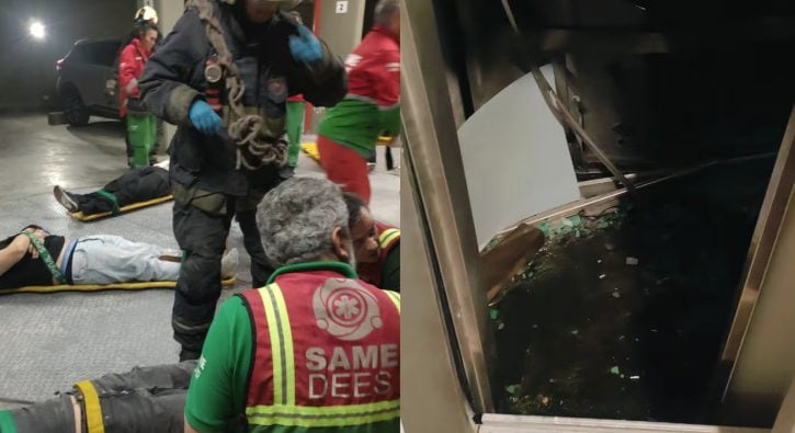 El hecho ocurrió cerca de la 1:35 de la madrugada. Por causas que aún se investigan, la cabina del ascensor cayó a toda velocidad desde el séptimo piso hasta la planta baja, provocando un estruendo que alertó a los vecinos. En su interior había seis mujeres y tres hombres atrapados, quienes quedaron atrapados tras el impacto.
