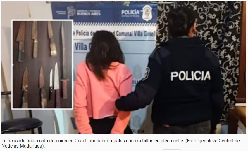Sobre ese caso, fuentes de la Secretaría de Seguridad local indicaron al portal Central de Noticias Madariaga que la policía se acercó al lugar tras recibir alertas de los vecinos por una mujer que se encontraba realizando “rituales” en plena calle.