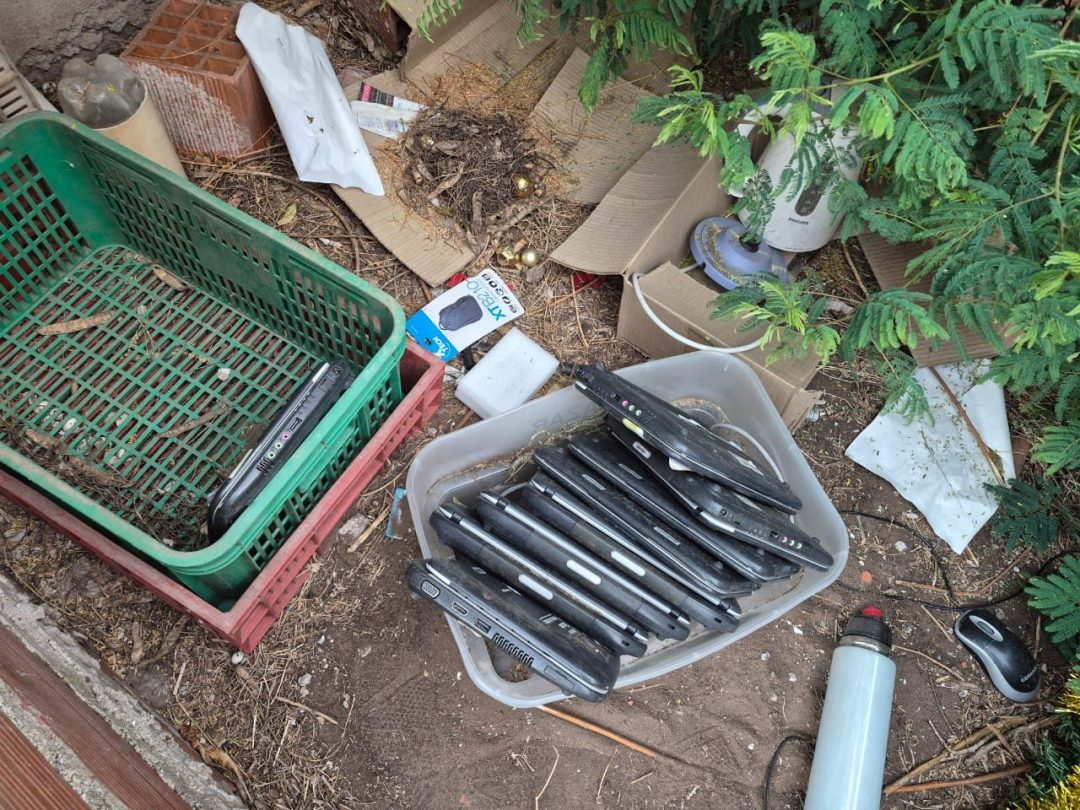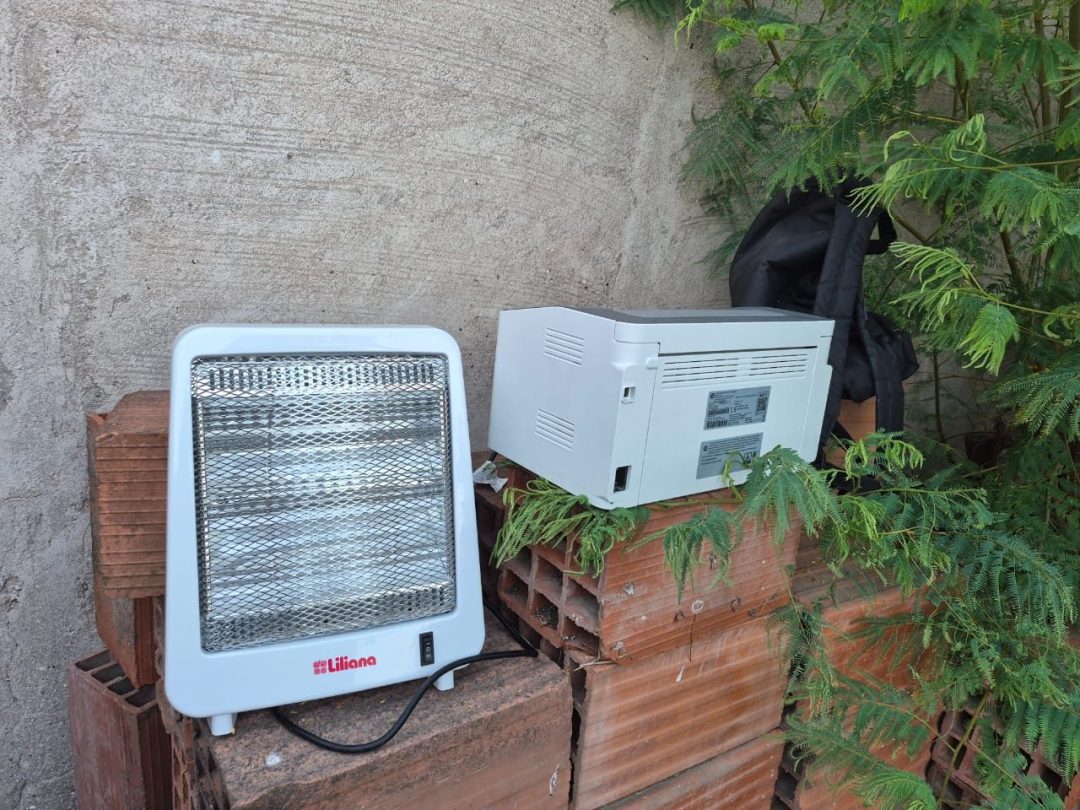 En el lugar, los efectivos constataron la presencia de nueve computadoras portátiles del Gobierno, de color negro, un router blanco, dos teclados (uno negro marca DELL y otro gris marca GENIUS), un mouse marca CORADIR, una impresora marca HP color gris, un termo de aluminio color gris, dos pavas eléctricas (una blanca marca PHILIPS y una negra marca MOULINEX), y dos estufas halógenas blancas, marcas ELECTROLUX y LILIANA.