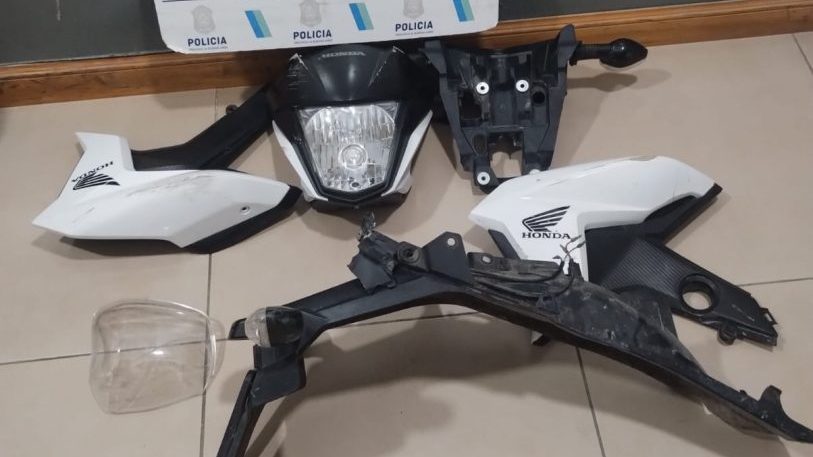 En el lugar, los efectivos secuestraron la motocicleta sustraída, tres bolsas con plásticos laterales, guardabarro, óptica con tablero —todas partes pertenecientes al rodado— y un teléfono celular.