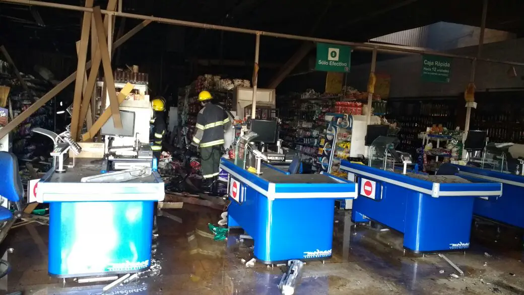 “Fueron varios focos que se combatieron en el salón comercial y las pérdidas fueron importantes. Presuntamente el fuego se habría dado en una sala de control y el fuego habría alcanzado parte del techo. El humo y la alta temperatura que llegó a tomar el sector, resultó a causar importantes daños” dijo Gustavo Malatesta al móvil de Radio Rosales.