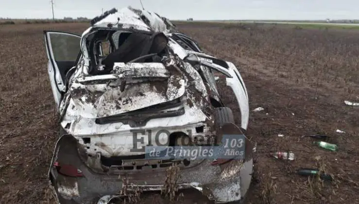 En el kilómetro mencionado, el automóvil -Ford Fiesta- bajó de la cinta asfáltica y continuó su recorrido por la banquina, que en ese lugar se encuentra en buenas condiciones. Allí el automóvil recorrió unos 100 metros, y dio como mínimo dos vueltas.