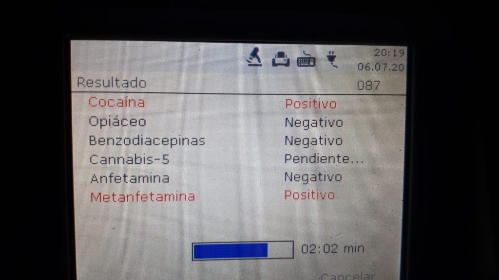 Al identificar al conductor, personal policial, detectó que no se manejaba con normalidad y fue sometido al druger test que arrojó positivo en el consumo de cocaína y metanfetamina.