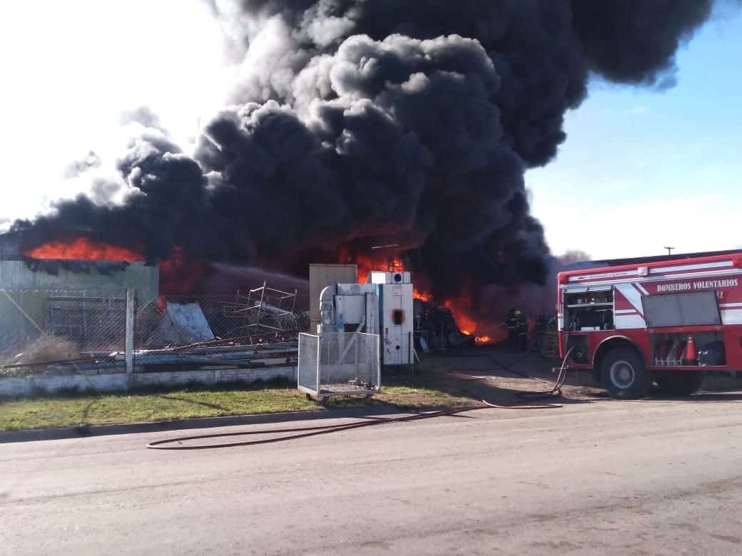 A las 14 horas se desató un gran incendio en instalaciones de la firma CorsAn de Corsi y Ansemil en el Parque Industrial de Coronel Suárez.