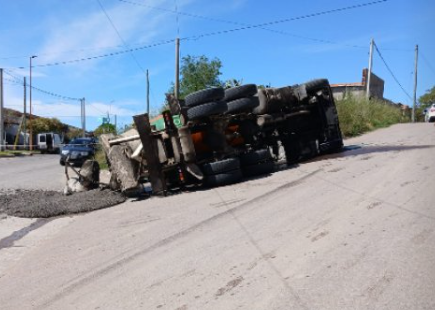 El vuelco del camión, que cargaba cerca de 20 toneladas de hormigón elaborado, se produjo cuando accedía a calle Uriburu, con una pendiente hacia arriba muy pronunciada, desde la Avenida Jujuy.