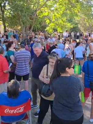 Más de 200 vecinos de la localidad de Médanos se manifestaron esta mañana en el acceso al pueblo para reclamar frente a la oficina de la empresa ABSA, por la falta de agua, una problemática que, según denuncian, se arrastra desde hace años y se agrava cada verano con las altas temperaturas.