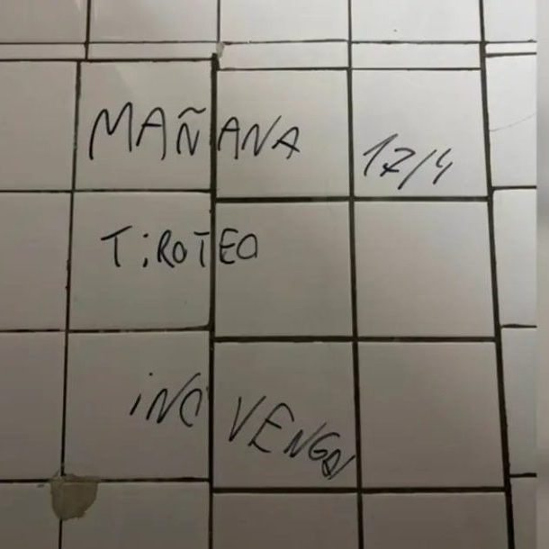 La inscripción, encontrada en un baño de varones del ciclo superior, hacía referencia a un posible ataque previsto para mañana, 17 de abril.